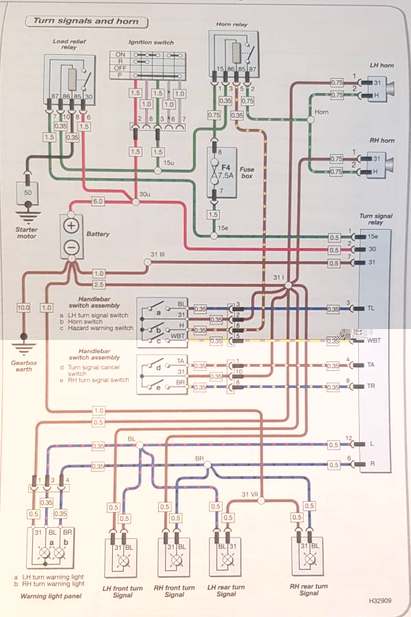 Het relais krijgt een geschakelde 12 volt, waar ook je toeter aan zit, via zekering F4. Een permanente 12 volt komt via zekering F3. Hier zit bijvoorbeeld ook je klokje aan.
