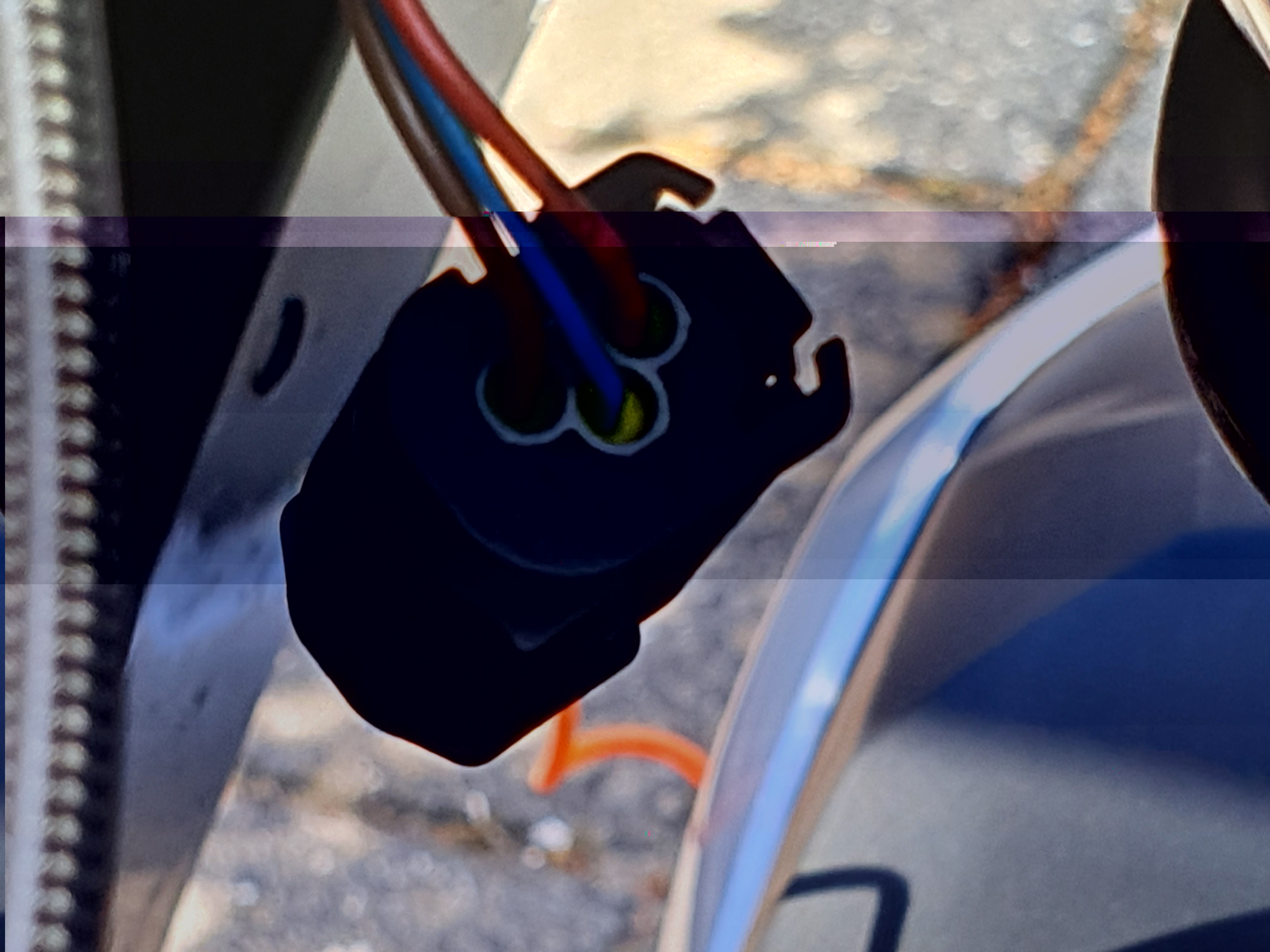 Onder mijn stuur hangt een afgedopte stekker met drie draden en drie kleine gaatjes om een contrastekker op te zetten.