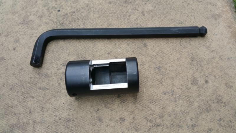 Dat gaat kennelijk het beste met een 30mm dop waarin een gat gefreesd is zodat de borgmoer aangedraaid kan worden zonder de bout te verdraaien. (Niet heel duidelijk beschreven, maar als je het eens gedaan hebt weet je wat ik bedoel)