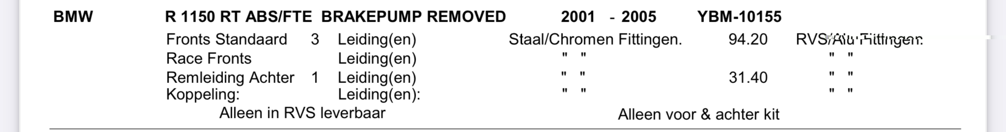 Dus nogmaals oproep waar ik de juiste remleidingset kan kopen voor de BMW R1150RT bj 2003 (zonder ABS)