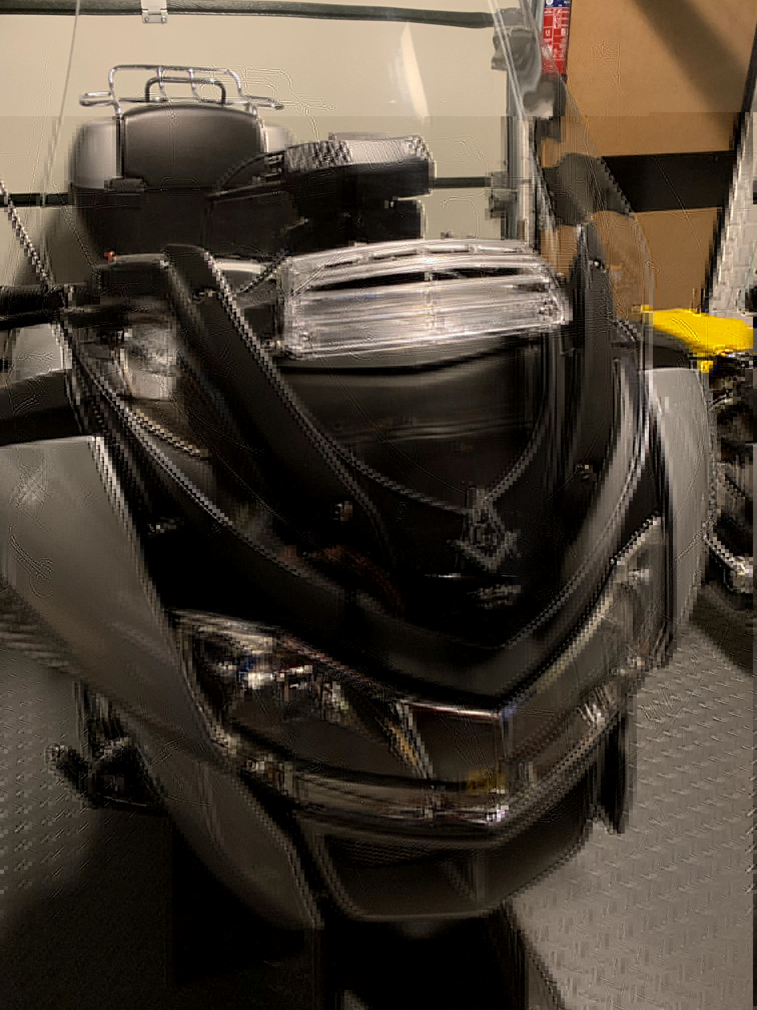 Wat blijkt: Er wordt hoe dan ook warme lucht opgetrokken tussen de vorkpoten. Enerzijds word de lucht omhoog geforceerd door het blok tijdens het rijden. Anderzijds zuigt het vacuum achter de ruit lucht omhoog. Dat is wel minder met een directe injectie van koudere lucht recht voor je, maar het is niet weg.