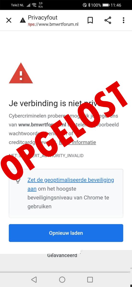 Dankzij onze Marcel, van eigenaar van provider www.mordamus.nl, was het issue binnen een uur weer opgelost en kunnen weer met hartenlust en veilig posten.