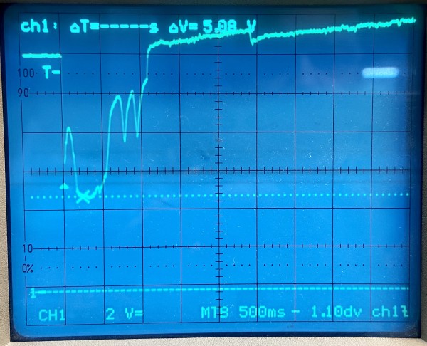 MAAR, bij de eerste startronde piekt deze naar zo’n 5v, om dan vervolgens nog een keer of 2 te demareren tussen 7,8 en 10v