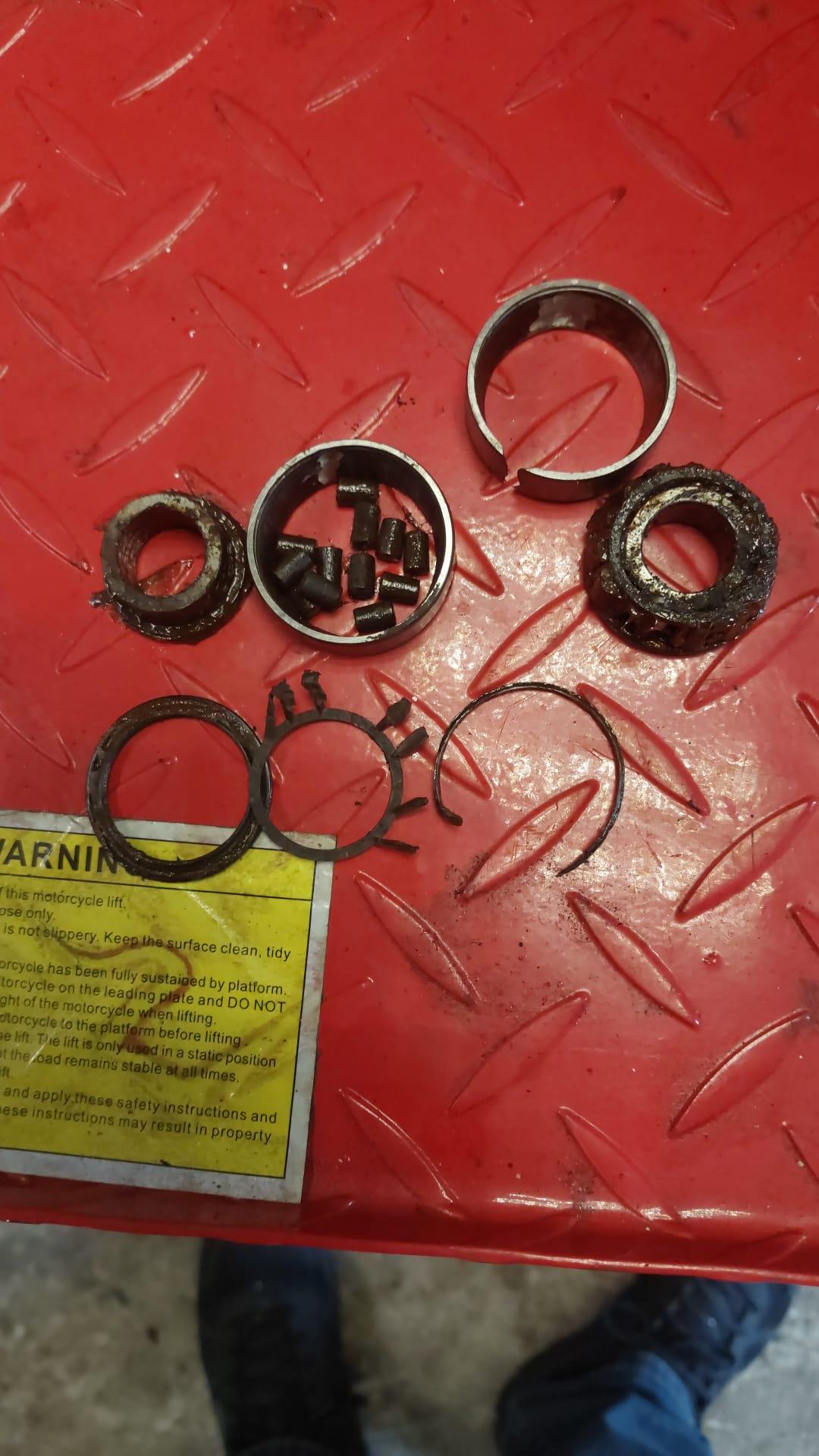 Het oude lager. Het lager eruit En het nieuwe lager Nou kunnen we met een gerust hart komend weekend het Sauerland onveilig maken en in Juli Duitsland, Oostenrijk, Italie, Oostenrijk, Duitsland, Frankrijk en Belgie. Ja een rondje van 2800 kilometer