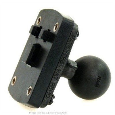 En dus heb je nodig de tegenhanger voor de "reguliere" RAM-balletjes (C-size), en na enig zoeken kom je dan op de "RAM-347U" met een 1.5" balletje.The RAM-B-347U base consists of a 1" diameter rubber ball connected at right angles to a 2" x 1.7" square base. The base has four pre-drilled holes at each corner, making the universal 1.5 x 1.188 (hole spacing) AMPS hole pattern.