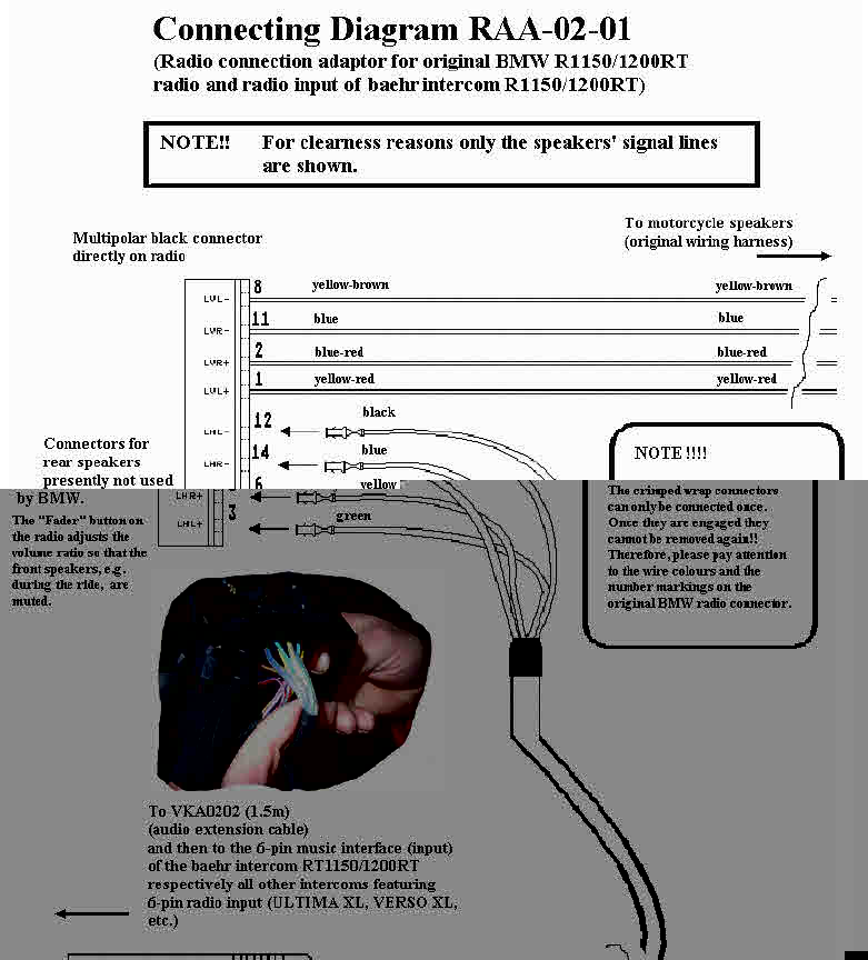 - zo mogelijk (op een of andere manier) de OEM radio/CD van mijn 1200RT kunnen beluisteren in onze helmen zonder dat de omgeving ongewenst meegeniet