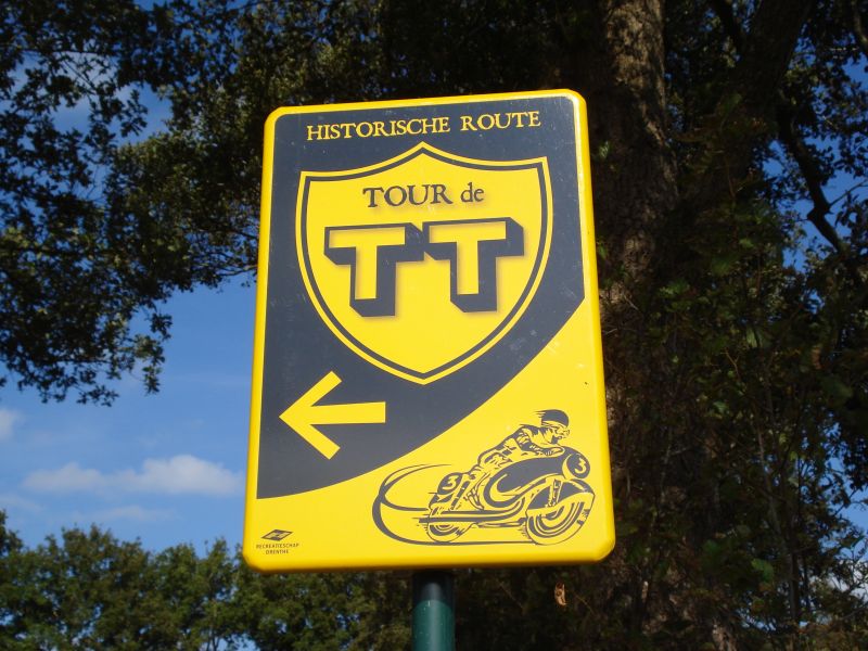 Vandaag bij prachtig weer in Drente de Tour de TT gereden.De grote borden zijn voor de motoren en de kleintjes voor fietsers.